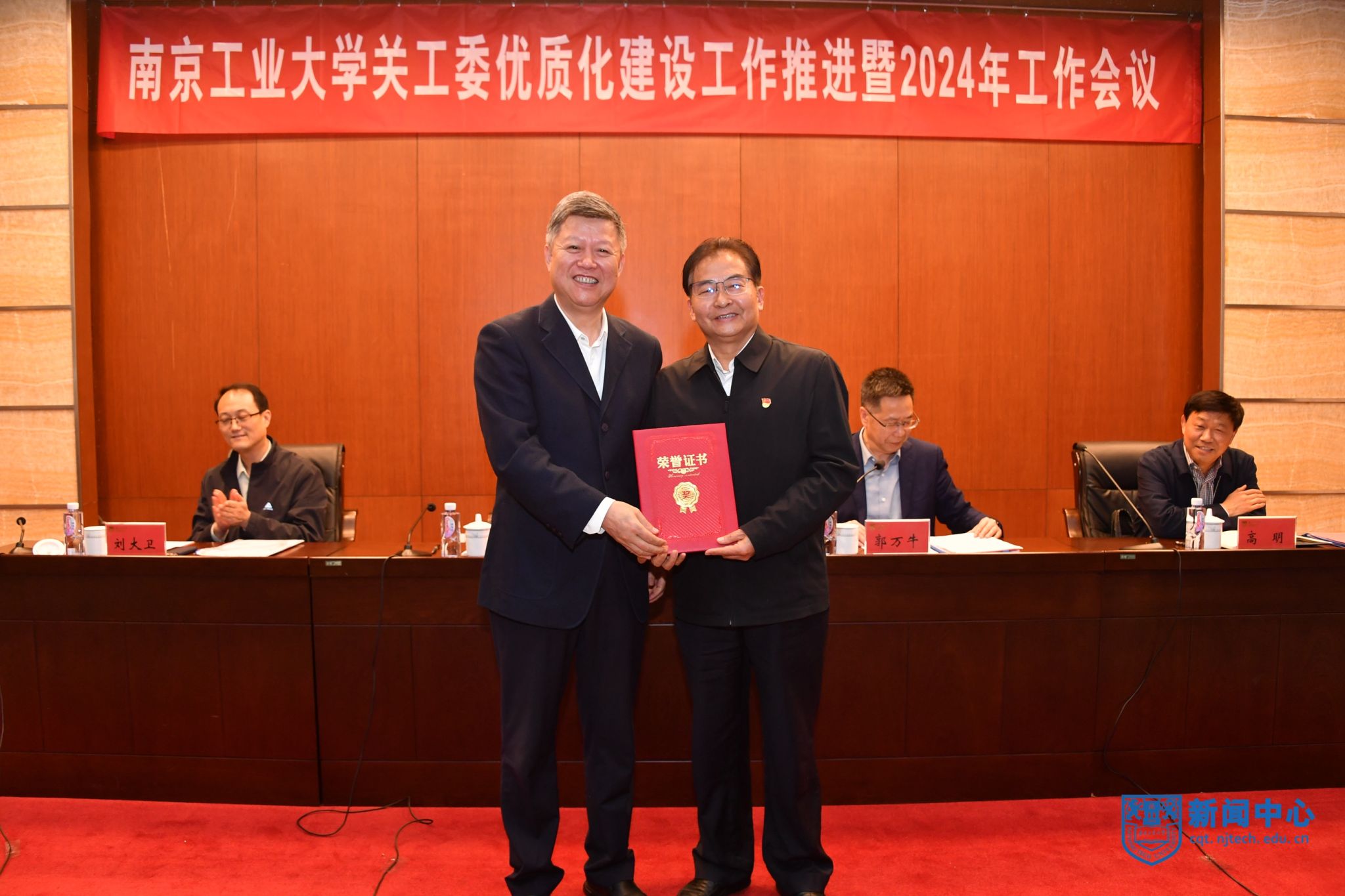 副校長、關(guān)工委副主任劉大衛(wèi)宣讀《關(guān)于調(diào)整南京工業(yè)大學(xué)關(guān)心下一代工作委員會組成人員的通知》。主席臺領(lǐng)導(dǎo)為新任校關(guān)工委老同志委員頒發(fā)聘書,為省教育系統(tǒng)關(guān)工委“精品教育案例”一等獎獲得者繆昌美頒發(fā)證書。彭光成、繆昌美、蔣遠(yuǎn)喜、許翠梅等同志作為學(xué)院關(guān)工委代表作交流發(fā)言。關(guān)工委常務(wù)副主任高明傳達(dá)上級文件精神,總結(jié)我校2023年關(guān)工委工作,對2024年關(guān)工委工作進(jìn)行部署,就學(xué)院關(guān)工委優(yōu)質(zhì)化建設(shè)均衡發(fā)展作動員。