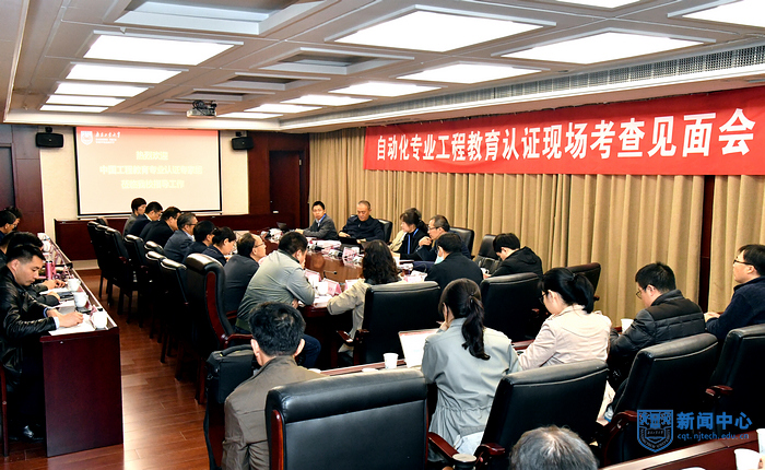 鞏建鳴副校長代表學校對專家組的到來表示歡迎,他介紹了學校的辦學特色以及工程教育認證工作情況。專家組組長孫小平教授介紹了本次考查目的。在聽取自動化專業負責人李麗娟教授現場匯報后,專家組成員就自評報告及匯報中有關問題向學院及學校相關職能部門負責人進行了詢問。