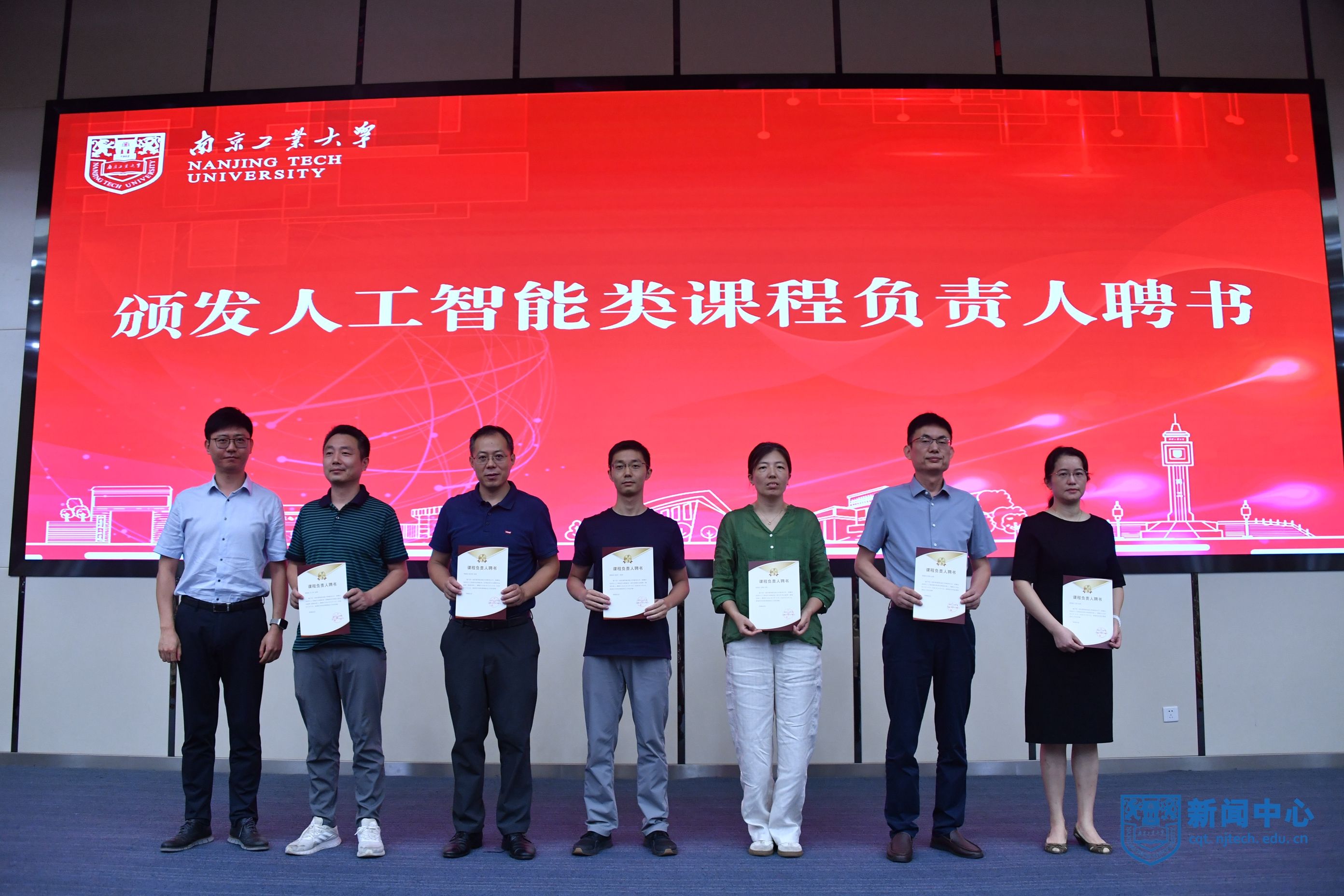 會上,王建平、陸偉東共同為人工智能課程群虛擬教研室揭牌,居沈貴處長為虛擬教研室主任代表頒發聘書,劉睿副處長為課程負責人代表頒發聘書。李麗娟副處長發布本科生AI素養筑基計劃方案,王萬良教授做主題報告,來自高校和企業的其他5位專家進行了講座培訓,虛擬教研室主任劉學軍、姚山季、方海分享各專業集群的人工智能課程群建設方案。