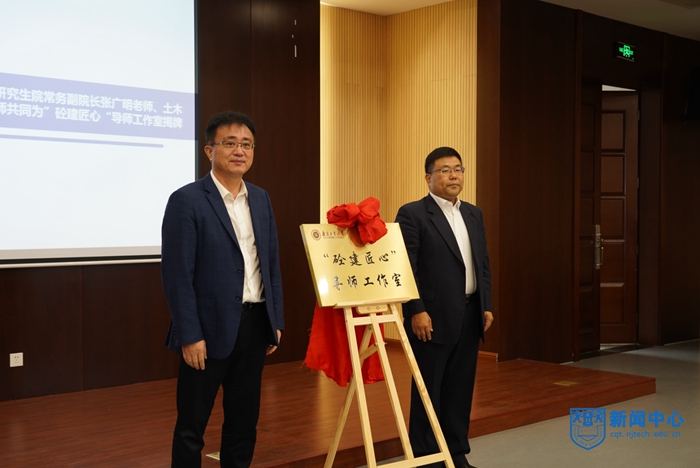 張濤對(duì)導(dǎo)師工作室的成立表示祝賀,并對(duì)導(dǎo)師工作室今后的培養(yǎng)方向和發(fā)展規(guī)劃提出了要求;隨后,張廣明和張濤共同為“砼建匠心”導(dǎo)師工作室揭牌。