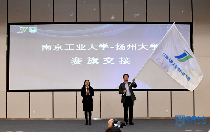 最后,南京工業(yè)大學(xué)代表大賽組委會(huì)向下屆承辦單位揚(yáng)州大學(xué)交接了會(huì)旗,標(biāo)志著前后延續(xù)近一年的第五屆江蘇大學(xué)生交通科技大賽順利落下帷幕。