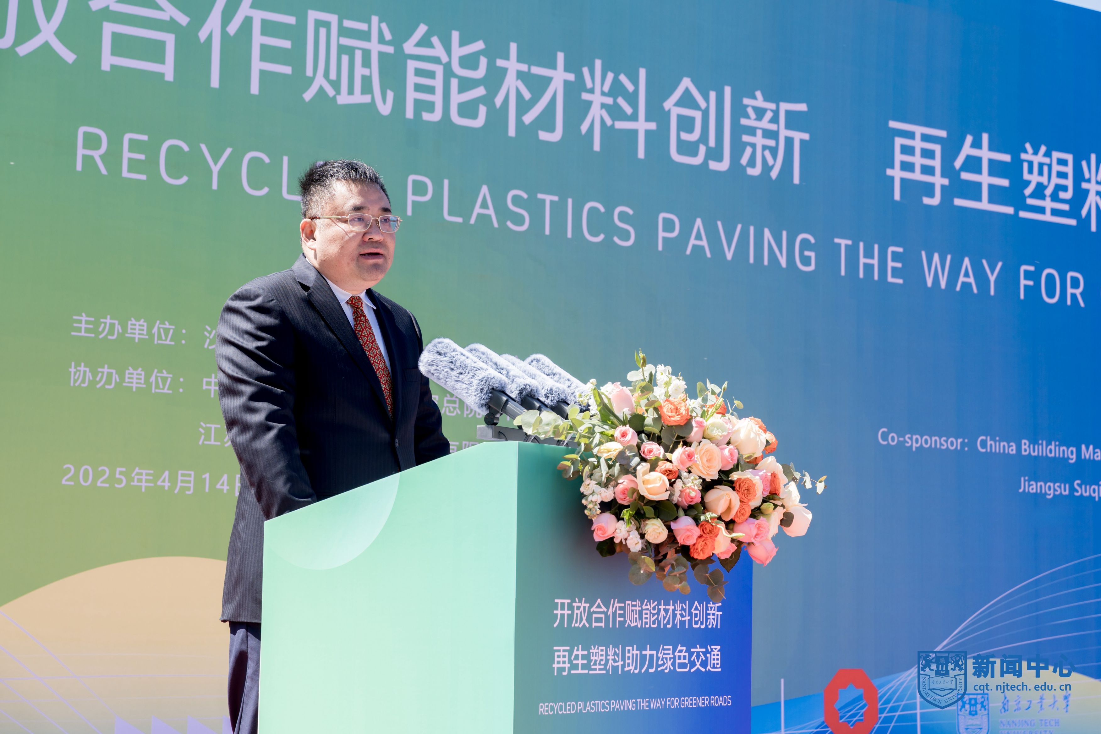 近日,副校長陸偉東帶隊赴宿遷參加全球首例“再生塑料雙摻瀝青路面”示范工程成果發布會,與全球伙伴共同見證綠色交通領域的重大突破。沙特阿美亞洲中國區總裁納迪爾·阿拉法,中國建筑材料科學研究總院有限公司副總經理文寨軍,宿遷市政協副主席、宿遷交通集團總經理史明霞等出席活動。