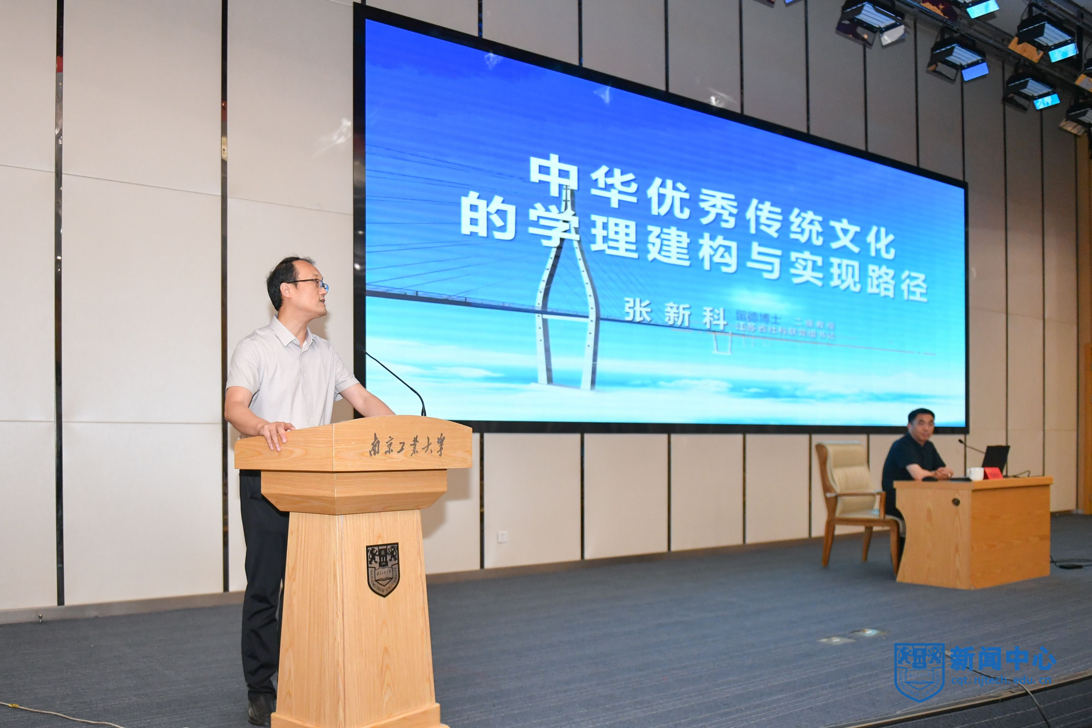 5月21日下午,我校第150期明德大講堂在弘毅樓五樓報告廳舉辦。江蘇省社科聯黨組書記、常務副主席、南京工業(yè)大學應急智庫學術委員會主任、二級教授張新科,應邀作題為《中華優(yōu)秀傳統(tǒng)文化的學理建構與實現路徑》的專題講座。校黨委書記荊晅會見張新科。副校長劉大衛(wèi)主持報告會,黨委常委、黨委宣傳部部長夏侃,校團委、科學研究院、應急治理與政策研究院相關負責人及兩百余名師生參加講座。