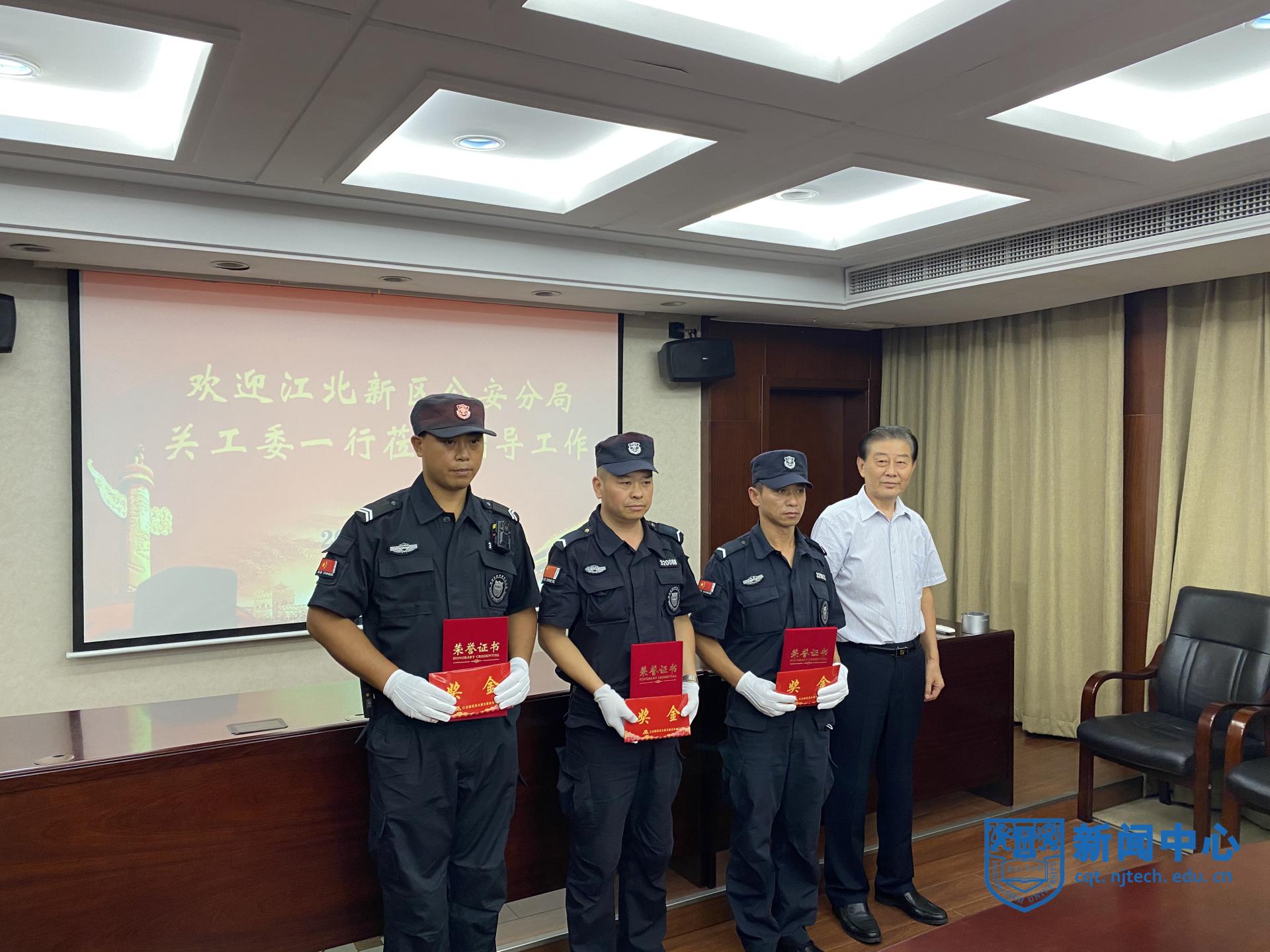 童政權部長感謝江北新區公安分局對我校安全工作的關心與支持,同時對安保隊員見義勇為的精神和行為給予充分肯定。